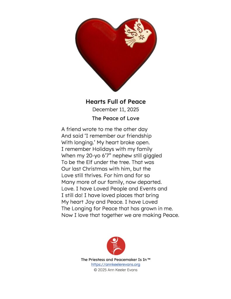 December arrives with my exploration of Hearts Full of Peace. I’m very happy with both the theme and the poems, which for the very first time I’ve written as a 31-day suite of poems