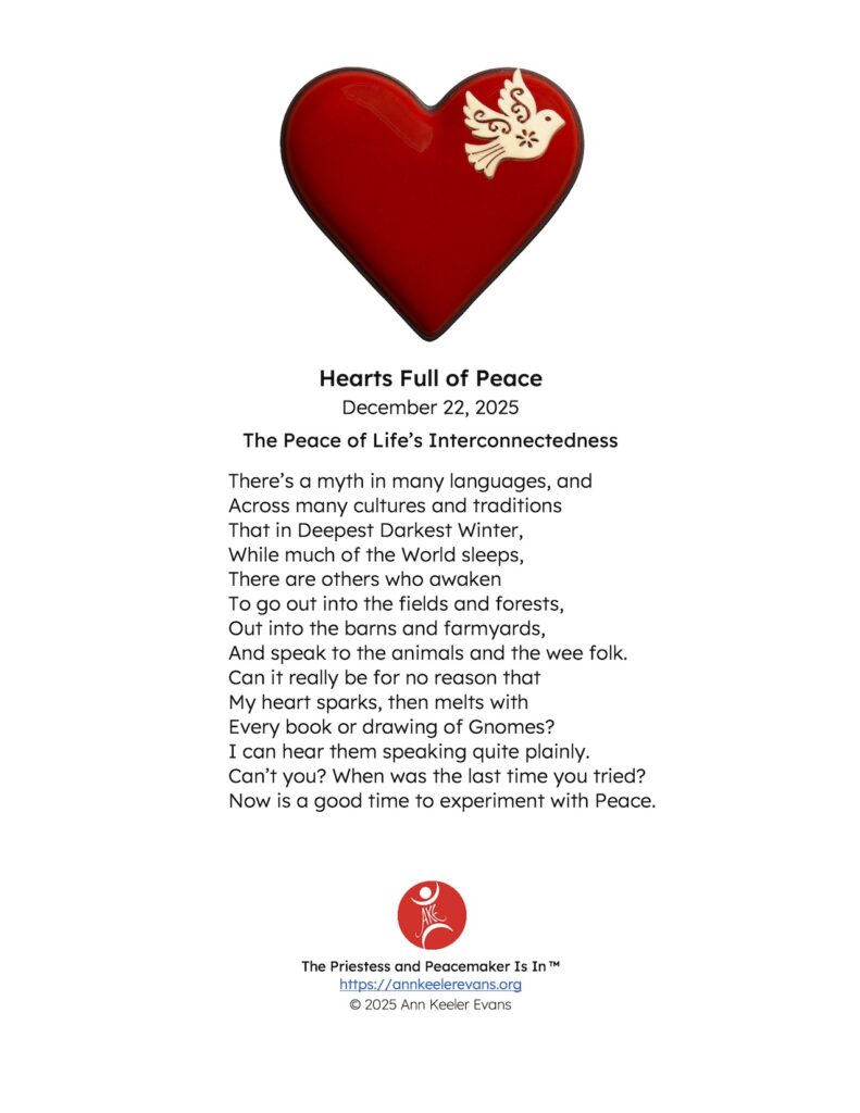 December arrives with my exploration of Hearts Full of Peace. I’m very happy with both the theme and the poems, which for the very first time I’ve written as a 31-day suite of poems