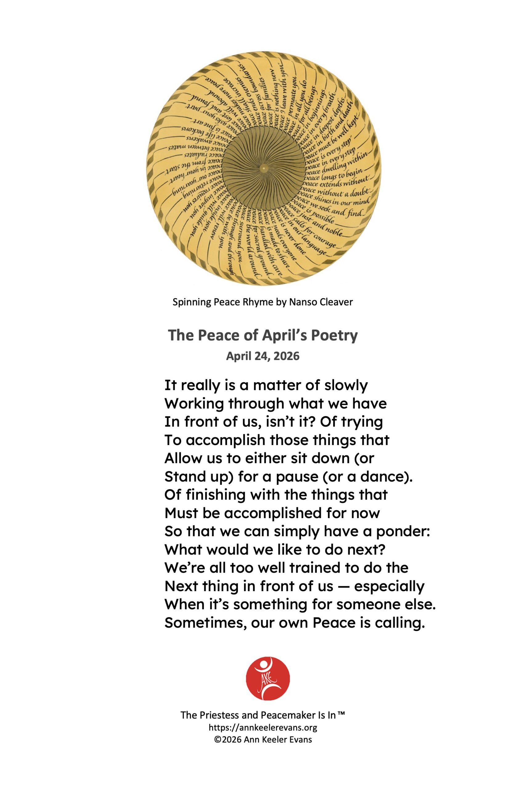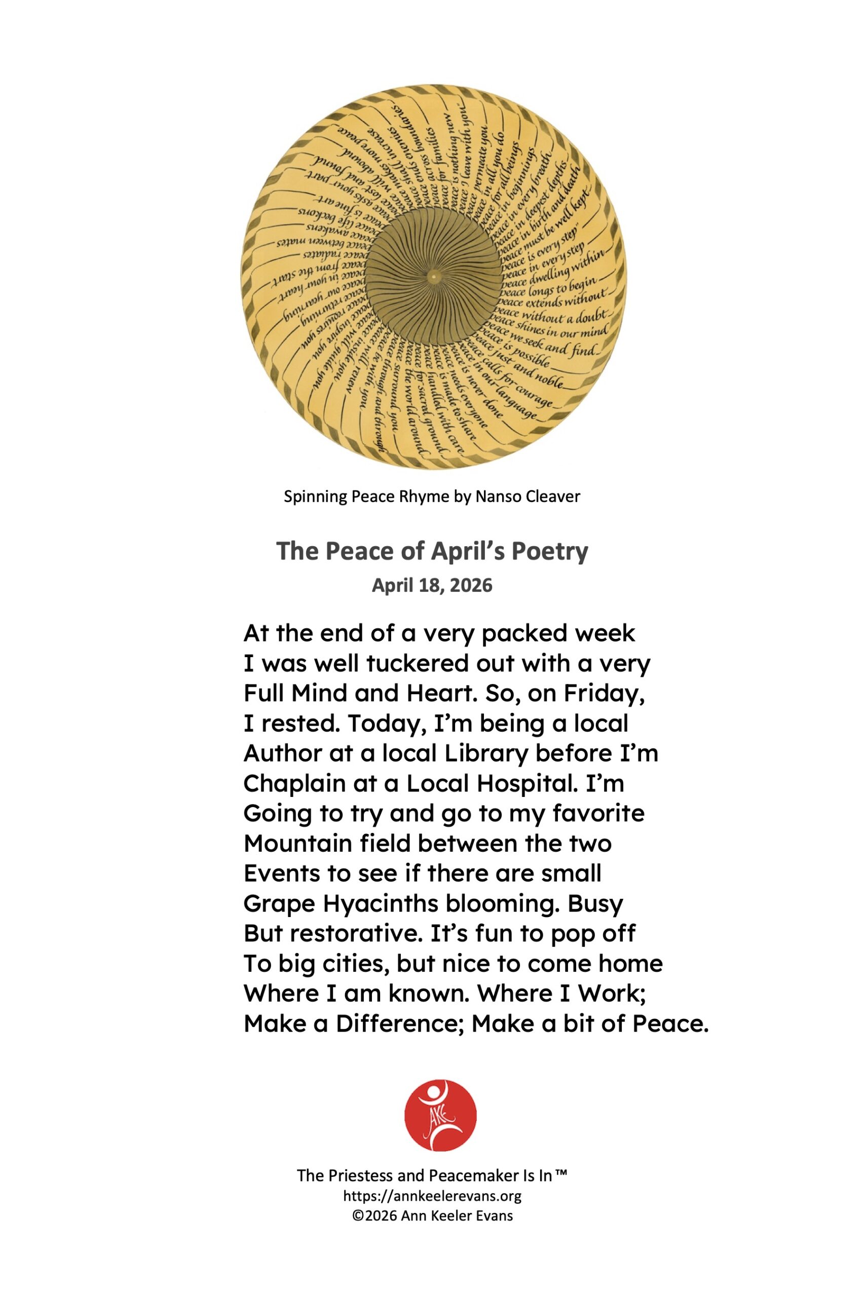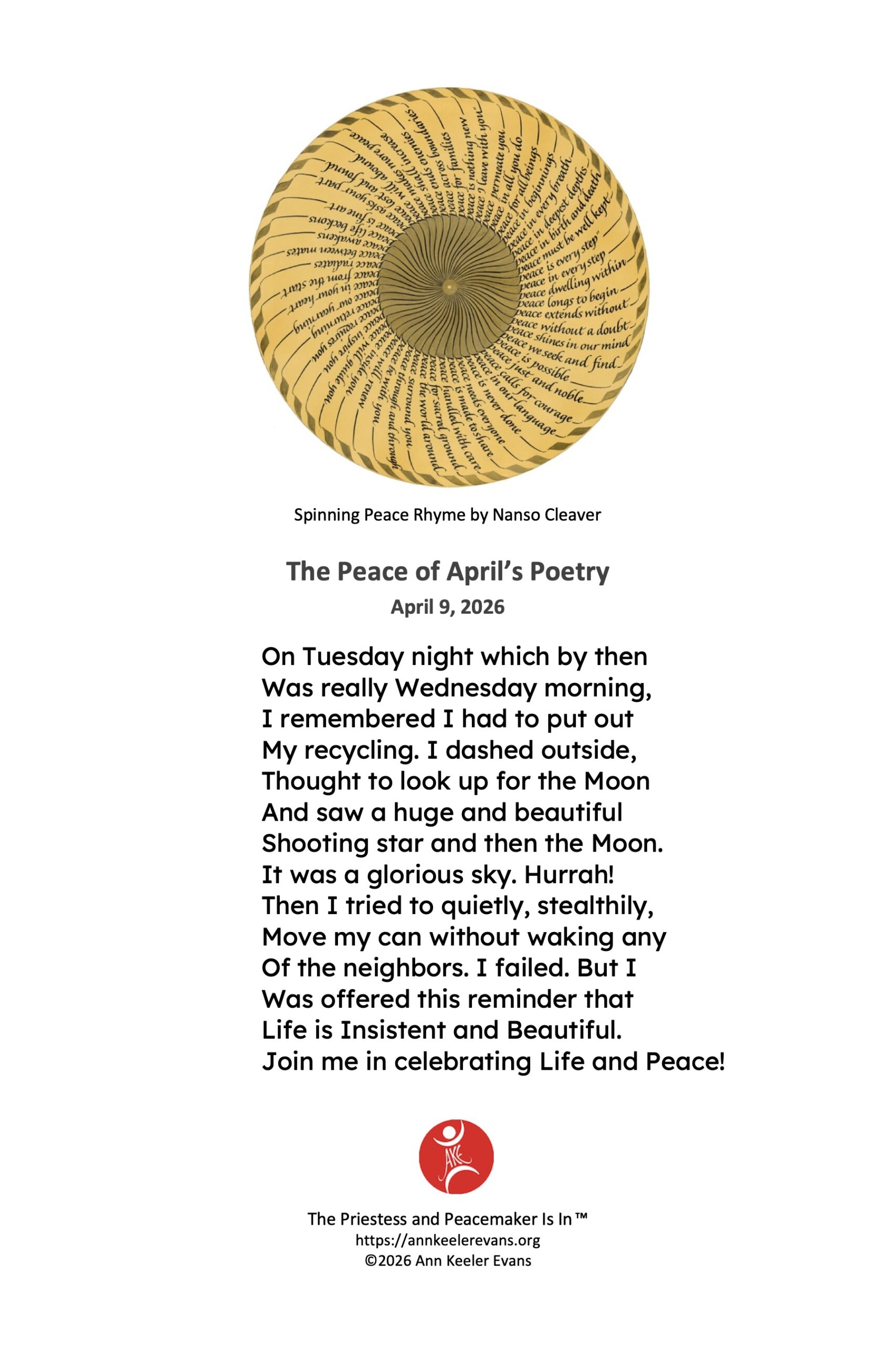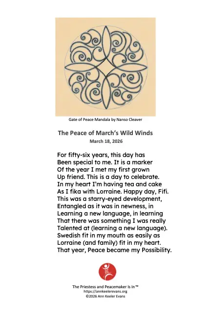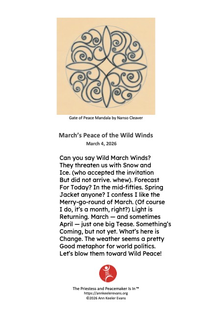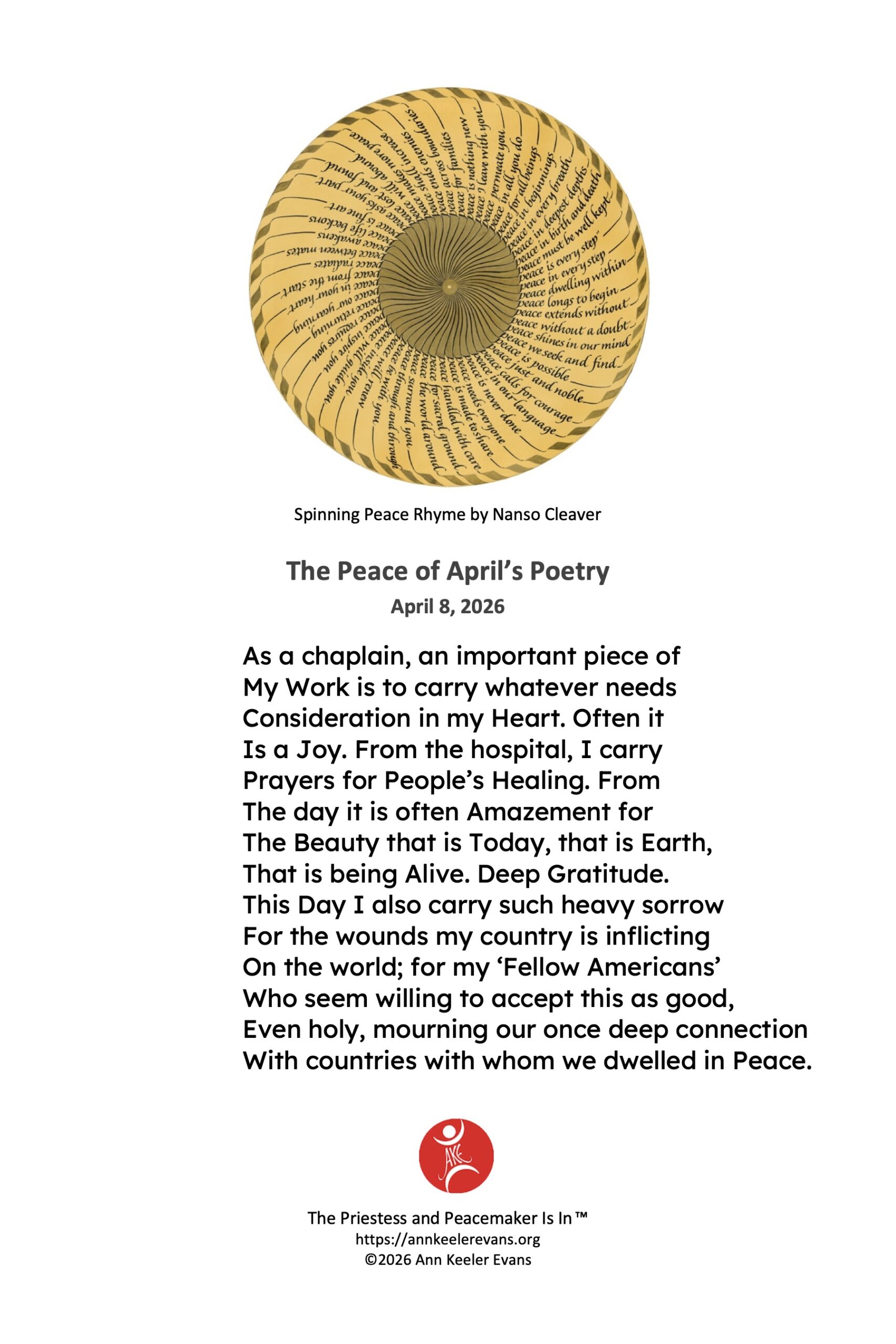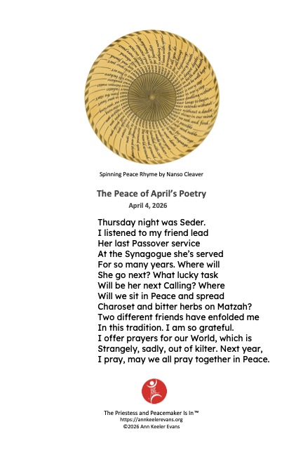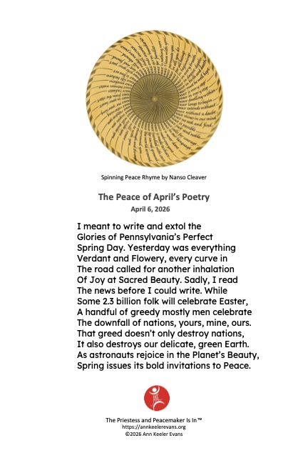 I’m Ann Keeler Evans – Peacemaker, poet, priestess –