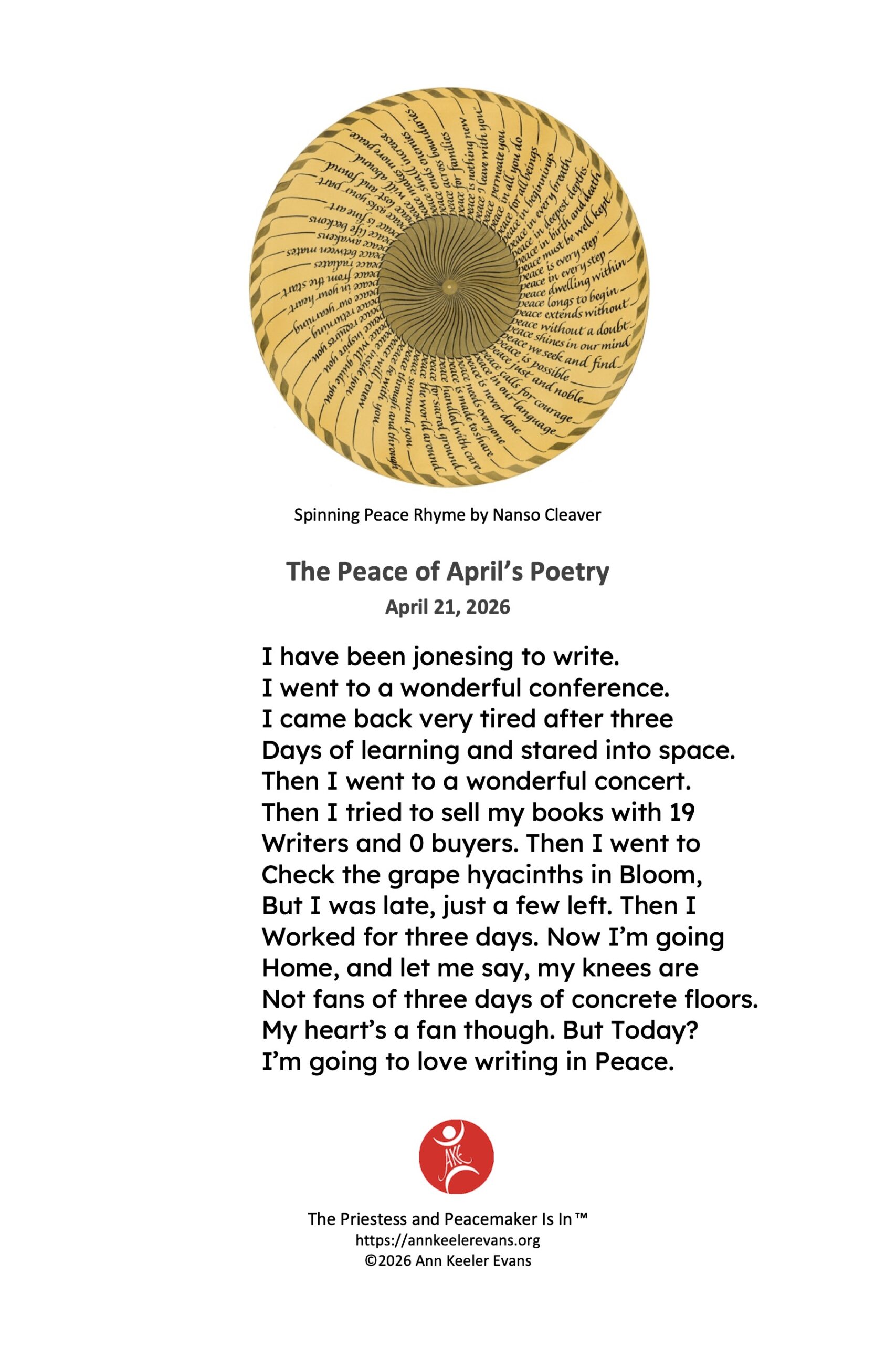 I’m Ann Keeler Evans – Peacemaker, poet, priestess –