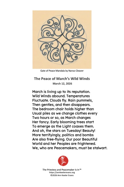 I always think Months have their own work. March is fulfilling its weather requirements. We’re invited to shape our behavior on the weather’s. However, governments seem to be imitating March in unhealthy ways. Wild March weather is normal. War is a human abomination.