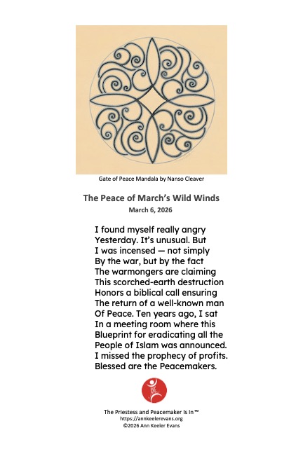 War does not bring Peace. Every Being is sacred. We are called to be Peacemakers. Let us be together in Peacemaking.